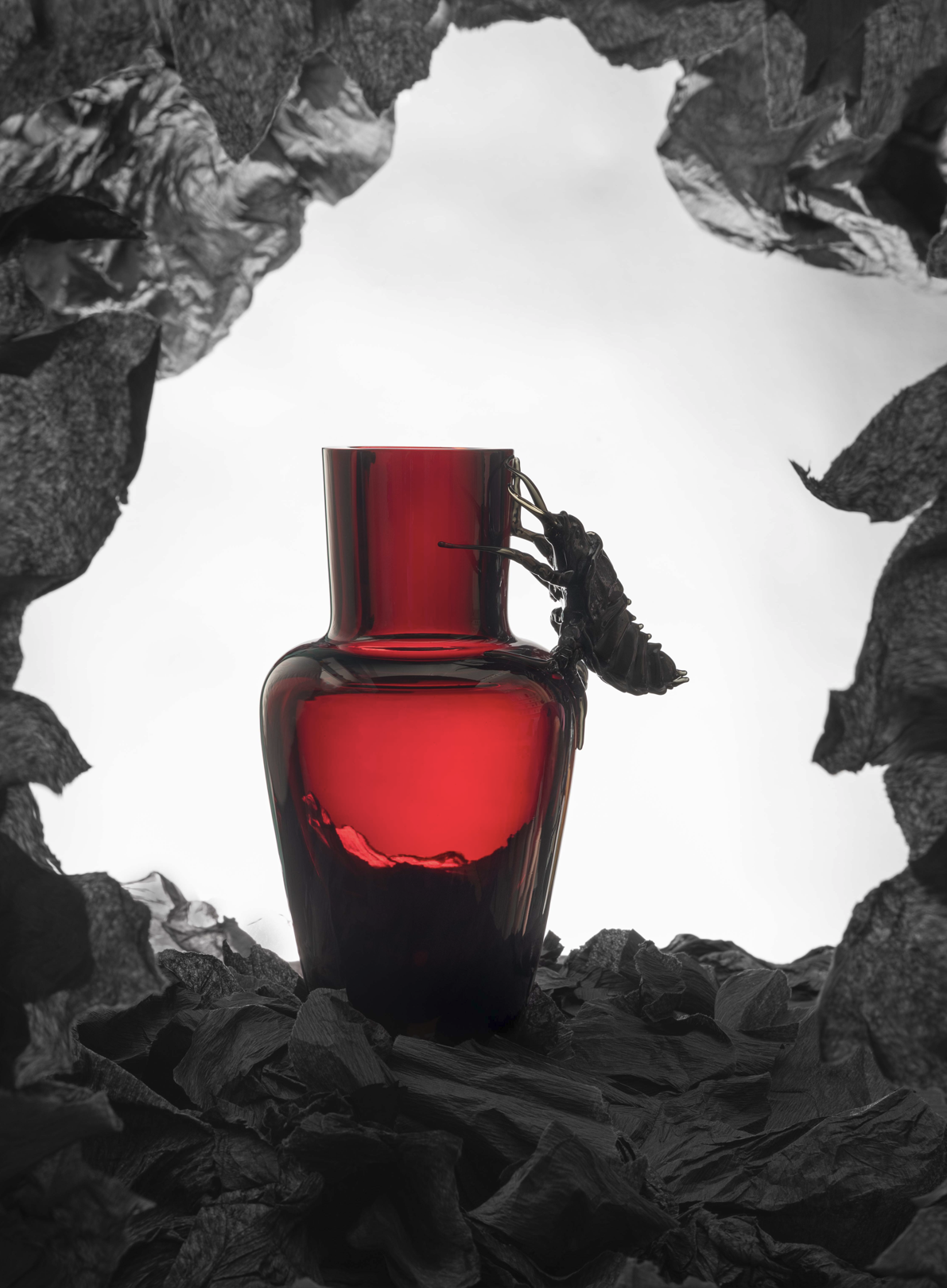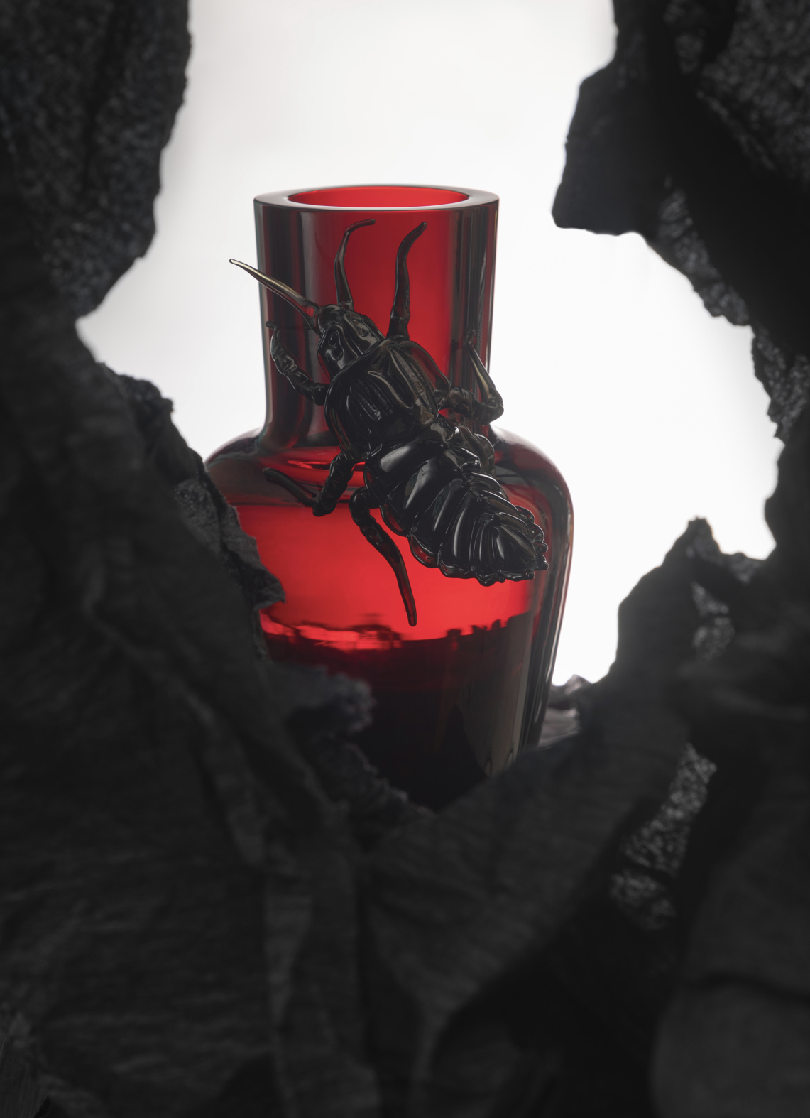 In the artist’s words: “I set minimalist, earthy vases as stages for hyper-realistic creatures—spiders, beetles, crows. By bringing fear close enough to touch, I invite it to turn into curiosity.”